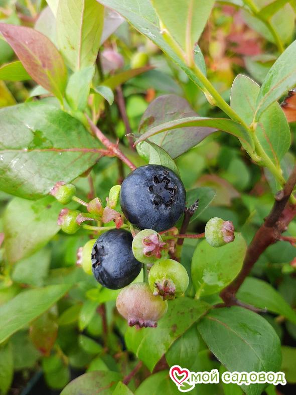 ☀️ Высаживать саженцы голубики с закрытой корневой системой можно на протяжении всего вегетационного периода (весна-лето-осень). Посадку голубики весной в открытый грунт следует проводить после исчезновения угрозы возвратных заморозков, когда воздух прогреется до 10-15⁰С, но до распускания почек (в апреле-мае). Таким образом, саженец будет иметь достаточно времени, чтобы укорениться и адаптироваться к новым условиям. Осенью к посадочным работам приступают в конце сентября-начале октября.. после того, как растение закончит вегетацию и останется без листьев. При этом оно будет иметь в своем распоряжении 3-4 недели до устойчивых морозов для укоренения. Одна порция голубики (100 грамм) даёт организму столько же антиоксидантов, сколько пять порций брокколи или яблок. Послевкусие — винное, без терпкости. Форма плодов не круглая, а слегка приплюснутая. По мере созревания ягоды формируются в плотную гроздь, хорошо удерживаются на кусте, но при передержке в спелом виде постепенно начинают опадать и становятся более мягкие. Вот почему так важно своевременно собрать урожай. Преимущество сорта: хорошая зимостойкость; помимо высоких вкусовых качеств, обладает ещё и декоративностью; высокая продуктивность, интенсивное разрастания кустарника; самоплодный сорт; ягоды прекрасно подходят для домашних заготовок. А знали ли вы, что голубика способна … снижает температуру; оказывает противосклеротическое воздействие;  нормализует уровень сахара в крови; облегчает боли при цистите, энтероколите; показана больным при гастритах (если кислотность желудочного сока понижена); очень полезна при анемии, заболеваниях сердца; детям дают эту полезную ягоду в качестве источника витамина С;  сок голубики улучшает память у пожилых людей. ПОСАДКА Перед посадкой полейте растение в контейнере и дайте ему постоять, чтобы можно было легко вынуть саженец из контейнера не повредив корневую систему. Подготовьте посадочную яму глубиной и шириной примерно 0,5 м. Добавьте в неё кислую песчано-земляную смесь (лучше если это будет специализированный грунт с повышенной кислотностью рН) и перемешайте с почвой, вынутой из ямки. Можно улучшить структуру почвы, добавив кислого торфа. Посадите растение так, чтобы оно оказалось на несколько сантиметров ниже, чем оно сидело в горшке. Слегка уплотните землю вокруг саженца и еще раз полейте как следует. Для предотвращения испарения влаги покройте почву слоем мульчи (опилки, кора) толщиной 5-8 см.  Это позволит решить и ещё ряд проблем. Во-первых, слой мульчи позволит избавиться от сорняков, во-вторых, отрегулирует водно-воздушный и температурный режим верхнего слоя почвы (т.е. почва не пересыхает и не перегревается), в третьих, он улучшит освещённость куста, в четвёртых, поможет бороться с болезнями.