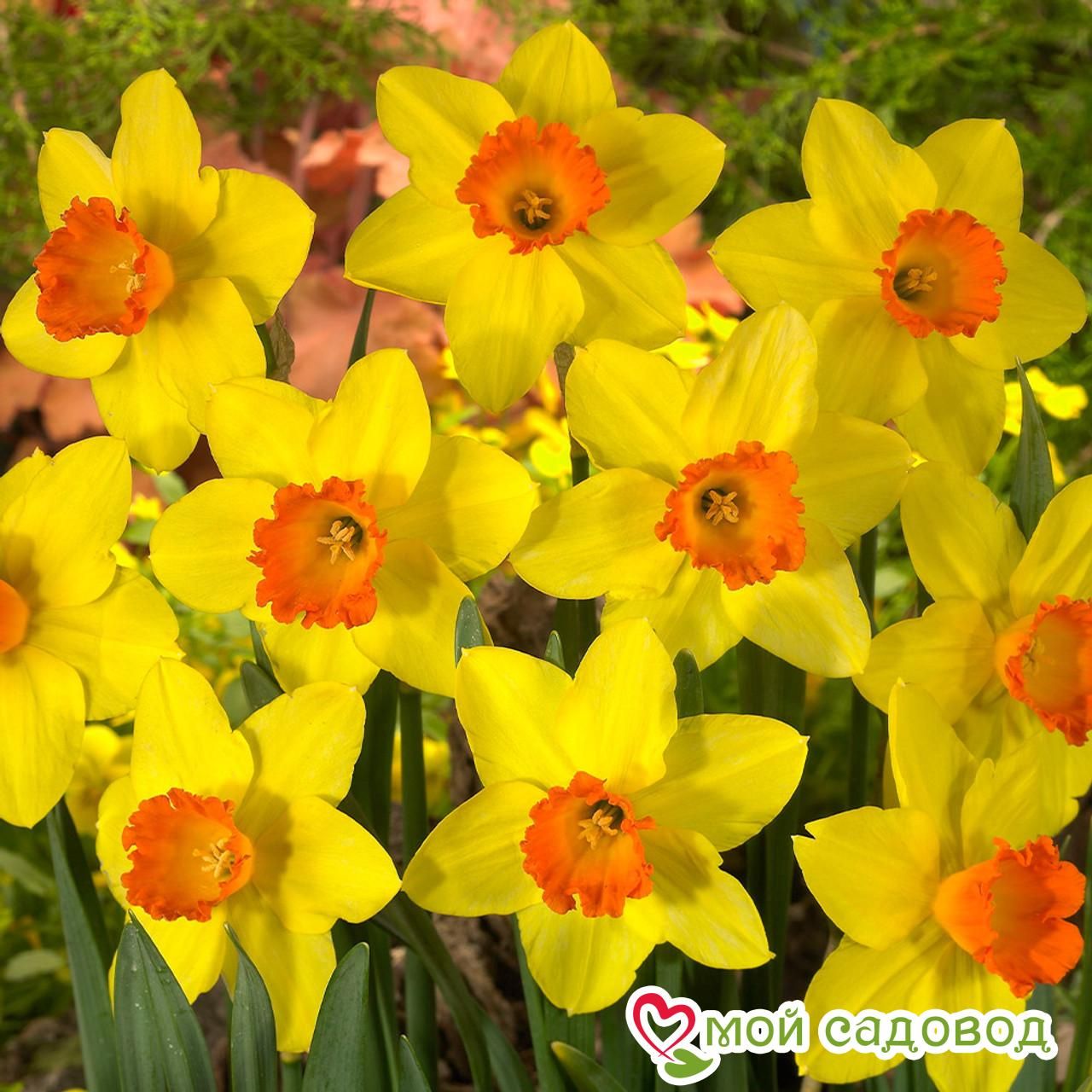 Читать далееРед Девон — это необычный нарцисс с контрастной окраской бутона, цветущий ранней весной. Двойные лепестки соцветия, яркого, желтого цвета с оранжевым оттенком, раскрываются в виде звездчатой чаши. Корончатая, гофрированная сердцевина, окрашенная в густой оранжевый цвет, создает яркий, сочный контраст. Сорт отличается от других нарциссов яркими соцветиями и оригинальной желто-оранжевой окраской лепестков. Крупнокорончатый цветок достигает 50 см в высоту. Диаметр бутонов может достигать 8 см. Цветение нарциссов начинается в апреле, а в некоторых регионах может наступить позже.